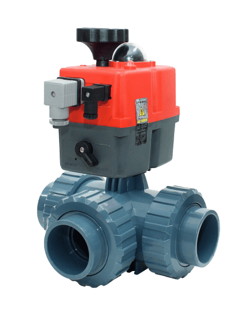 En motoriseret kugleventil består af to dele: en motor og en PVC-trevejs- eller tovejsventil.