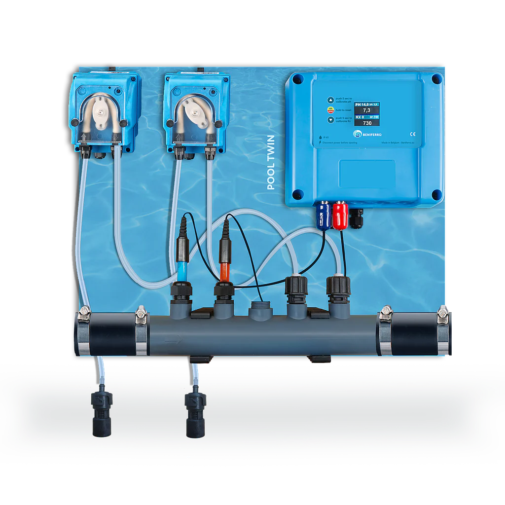 For at sikre rent og sikkert vand regulerer Beni Twin automatisk vandets pH-værdi (surhedsgrad) mellem 7,2 og 7,6 og klorindholdet mellem 0,5 og 1,5 ppm.