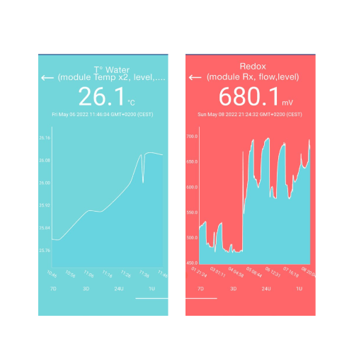 Disse værdier kan du aflæse på din mobiltelefon og senere bruge til at tænde eller slukke for bestemte apparater, såsom en filterpumpe/frekvensomformer, varmepumpe eller en chlordosering.