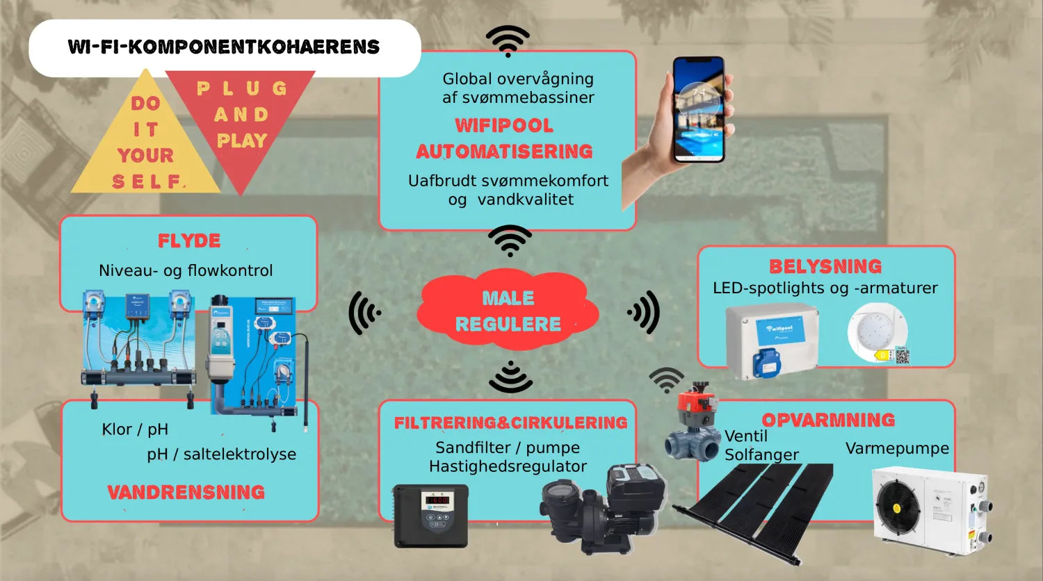 Din svømmebassin-domotica via wifi, vores app og din smartphone med andre ord.