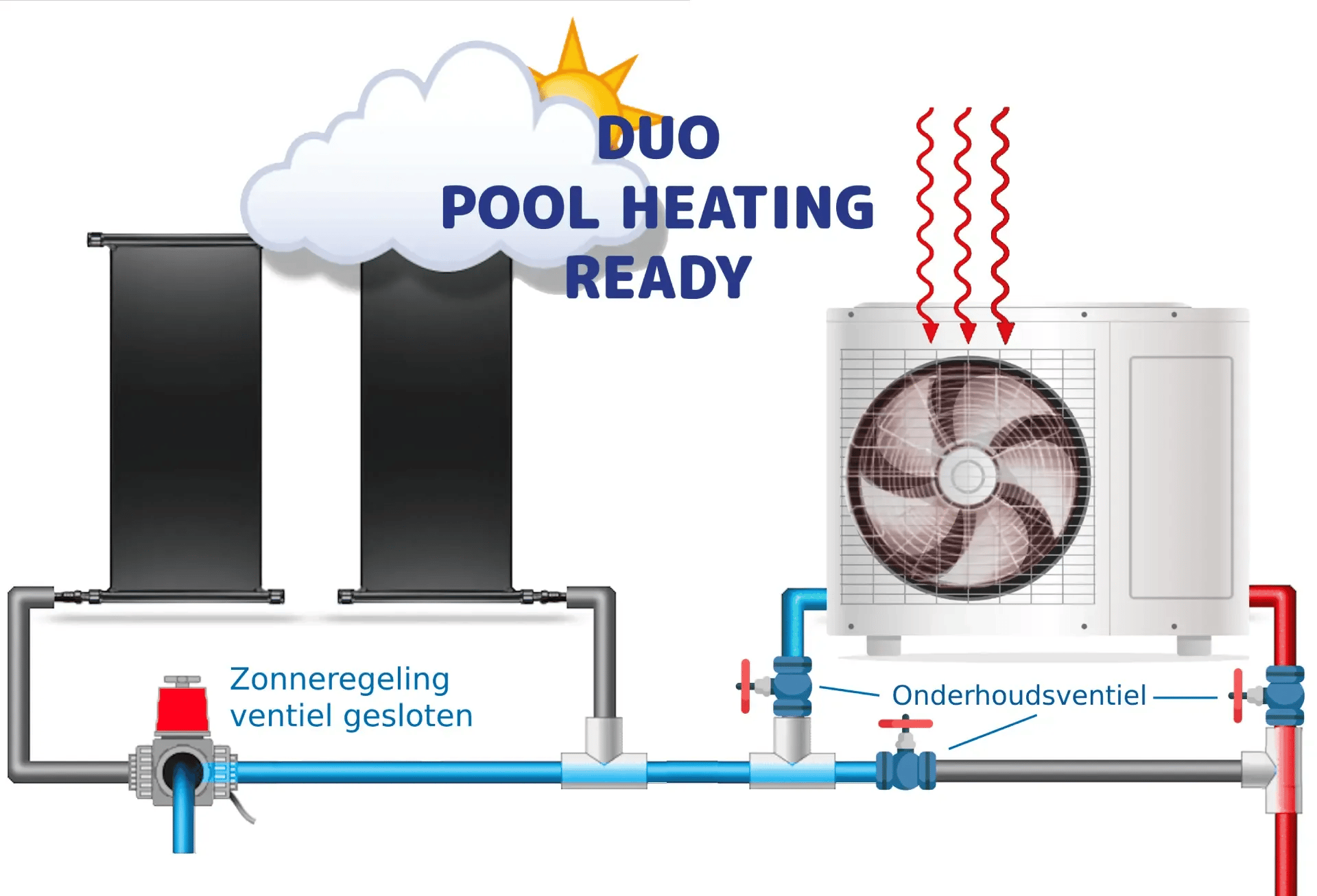 Når vand i swimmingpoolen når 32 °C (indstillelig), ledes vandet ikke længere til solmåtte.
